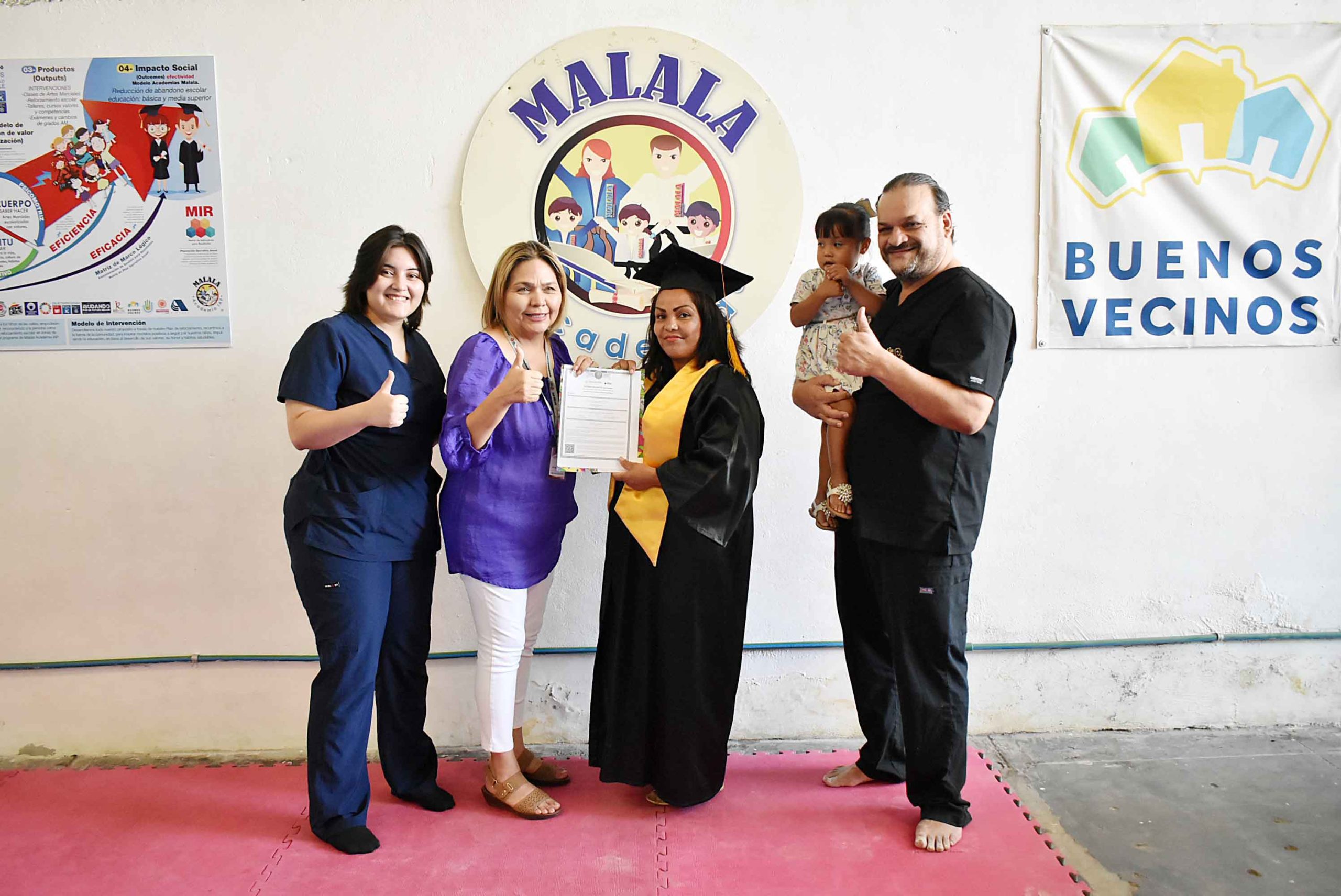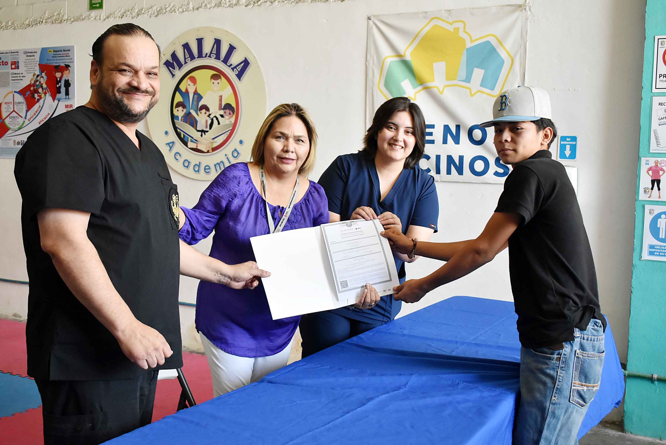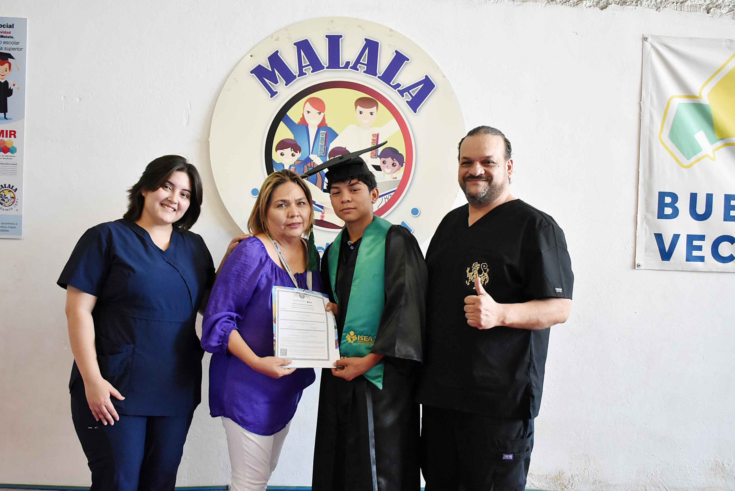 Hermosillo, Sonora, México.- Disfrutan alumnos y padres de familia de la fundación Malala Hermosillo, emotiva ceremonia de entrega de certificados Oficiales de la SEP de Secundaria, dentro de las actividades de promoción de la educación, en el programa de permanencia escolar y modelo de creación de valor, con el apoyo de nuestros ángeles Buenos Vecinos y nuestra amiga de ISEA, encargada de la plaza la Técnica Docente Mirna Ibarra. Esto gracias al trabajo en conjunto de ISEA y la fundación Malala Academia IAP-FSK.